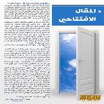 المقال الافتتاحي فن صحفي أصيل، لكنه يلقى الإهمال في الصحافة المصرية، وبينما تحافظ صحف (القومية بالذات) على وجوده يوميًا، على عادة الصحف العالمية الكبرى..يهمل كثير من الصحف الخاصة والحزبية أمره، ولا تُسند كتابته إلى كبار الكتاب، كما لا تُراعى فيه أصول الكتابة، بعرضه بشكل متسلسل مترابط، ممتع ومؤثر، وإنما ....